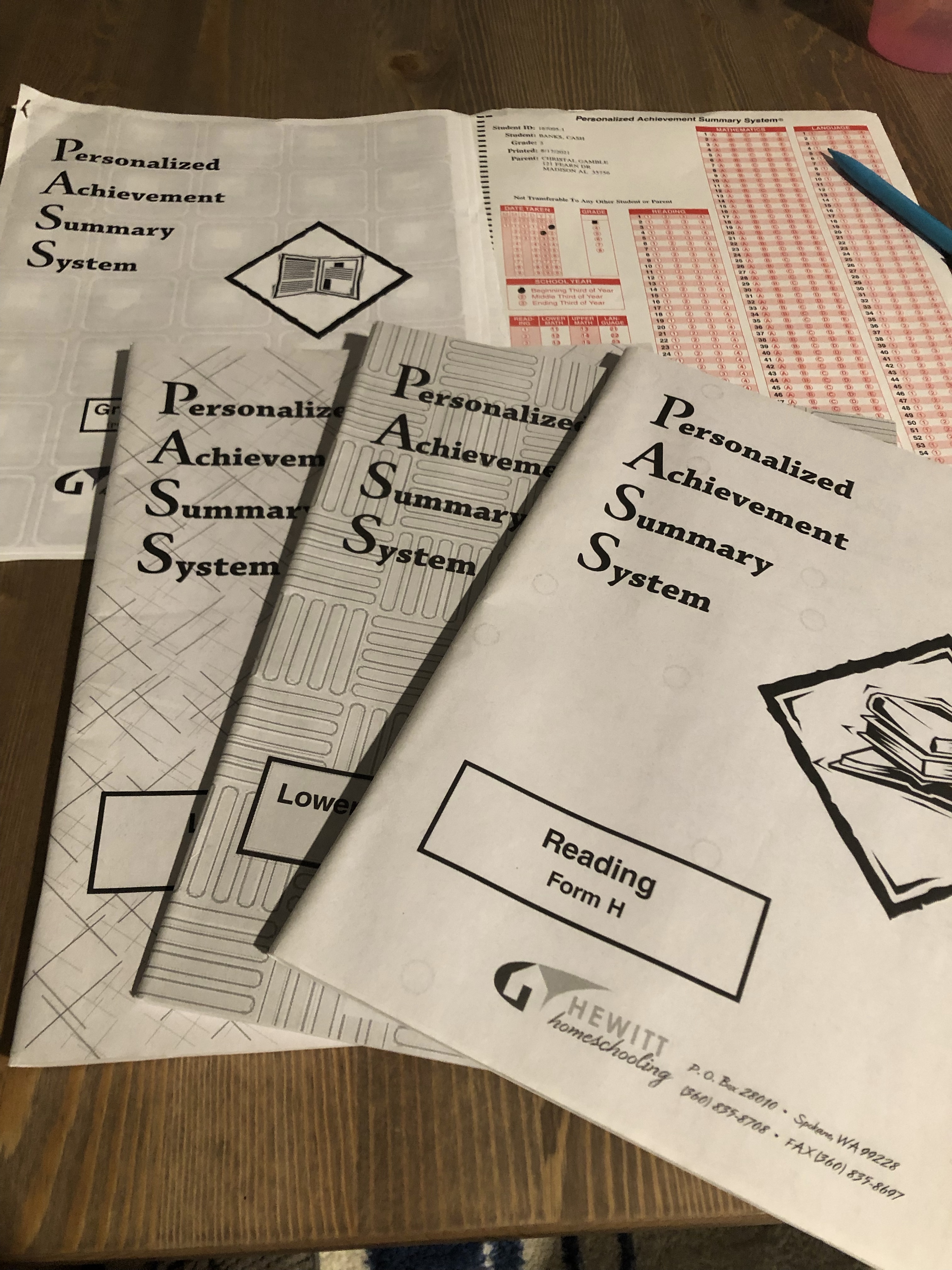 This is Scantron scored testing. If you plan to have your children re-enter traditional school at a later date, it may be beneficial to you to use the PASS Test to introduce standardized testing to your child and to aid in providing evidence of educational milestones being met at home. The Test begins with a preliminary placement assessment. It’s very brief, with a few questions for each of 3 test sections : Language, Reading, and Math. The parent scores it and in turn determines the appropriate level to begin at for each test section. There is no need to complete the entire test booklet. From here your student completes the testing on their own, with the parent as the moderator, until each section is complete with the Scantron bubbled in correctly. Return the completed Answer sheet via mail and expect to receive test scores in the mail within 2 to 4 weeks.