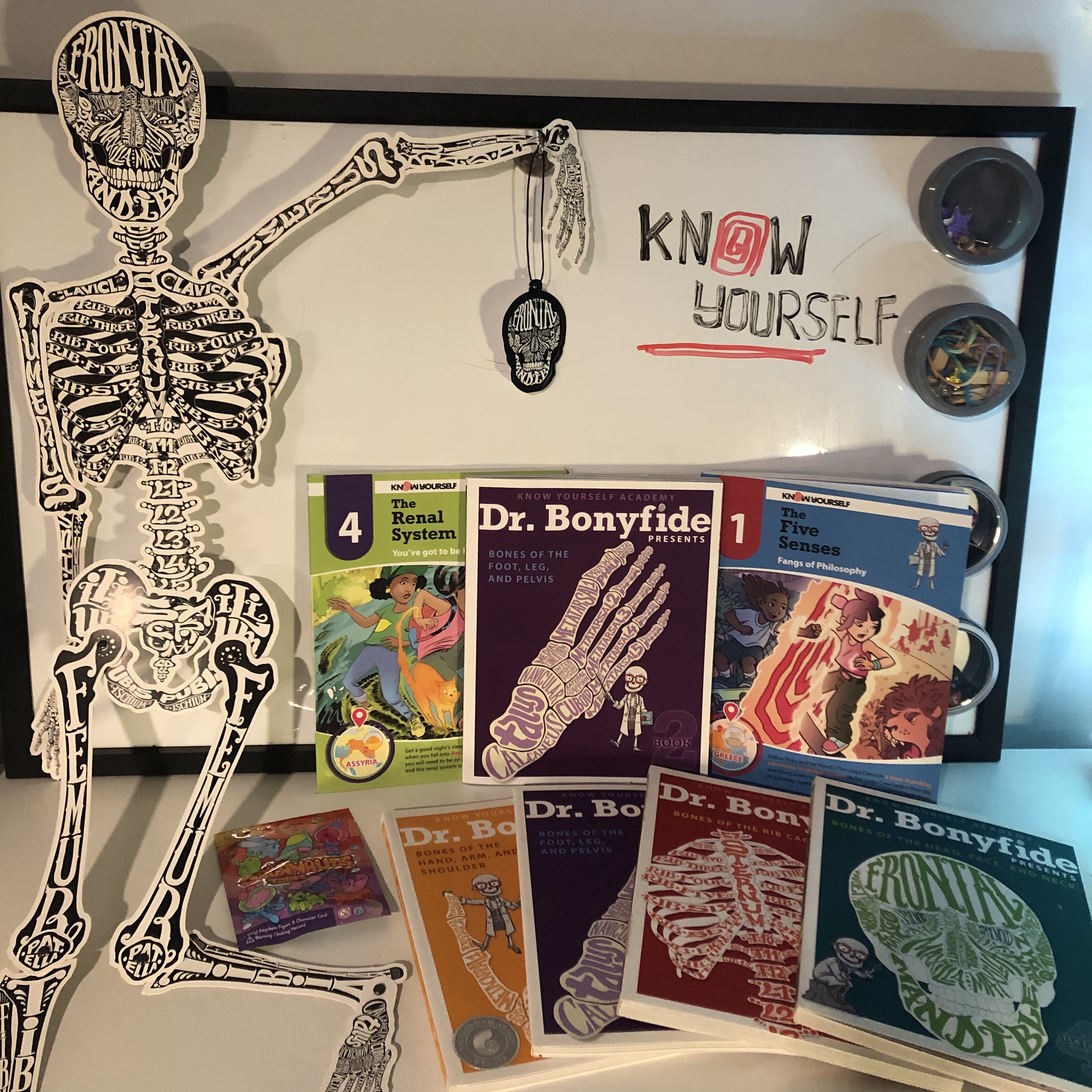 For the review, we received Dr. Bonyfide – Book 2: Bones of the Foot, Leg, and Pelvis, Know Yourself Book 1 : The Five Senses, Know Yourself Book 2: The Renal System, Dr. Bonyfide’s Know Your Bones Coloring Kit, an Organauts Keychain, and a Skull sticker. It was a wonderful introduction to the great products that Know Yourself has to offer. This was not my first time seeing Know Yourself. I had previously purchased the entire Dr. Bonyfide set of 4 Bones books so I was well versed in this superb learning tool. Not only is my opinion unbiased but it comes from a satisfied customer.