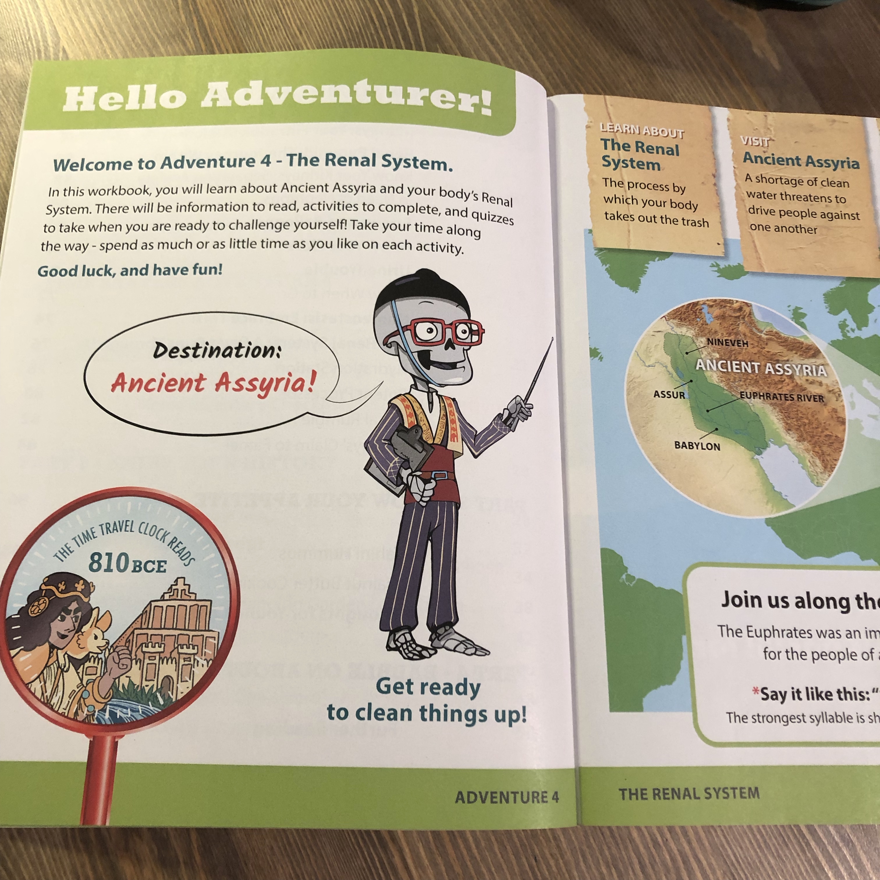 For the Know Yourself Series, the Learning Calendar will give you an estimation of the time needed to complete a single book. For example, Book 4: The Renal System gave us an estimated 15.5 hours from start to finish. I broke the lessons up into 1 hour segments of study, 4 days a week, over 4 weeks. The timing was perfect. While studying the Renal System we studied Ancient Assyria in the year 810 BCE, help our story heroes clean up the Euphrates River’s environmental pollution, met a famous Queen of Babylon, learned Cuneiform and made our own clay tablets, created a mythical creature, and learned all about the kidneys and nephrons by completing a hands on activity to illustrate how our own bodies filter toxins. This doesn’t even cover half of the activities included in the lessons.