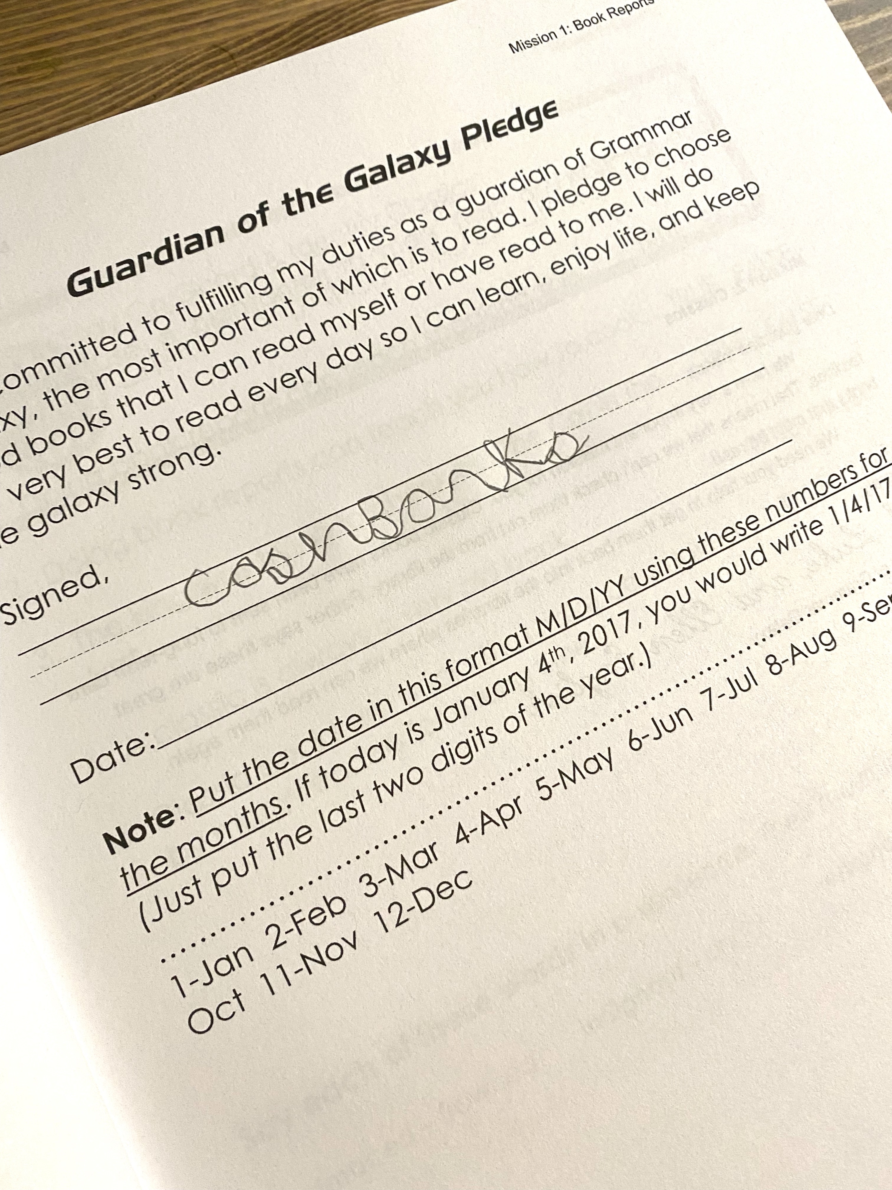 This entire Grammar Galaxy curriculum reads like a fun adventure story, making Language Arts a subject my child looked forward to. Cash’s Mission Manual started with him signing his Guardian of the Galaxy Pledge which charges him with reading good books daily. Rich vocabulary is introduced in each lesson, reading comprehension is challenged with relevant questions, and right from the start he’s given templates to write his own book report! From my parent teacher point of view, Grammar Galaxy was able to sneak a lot of learning into one curriculum!