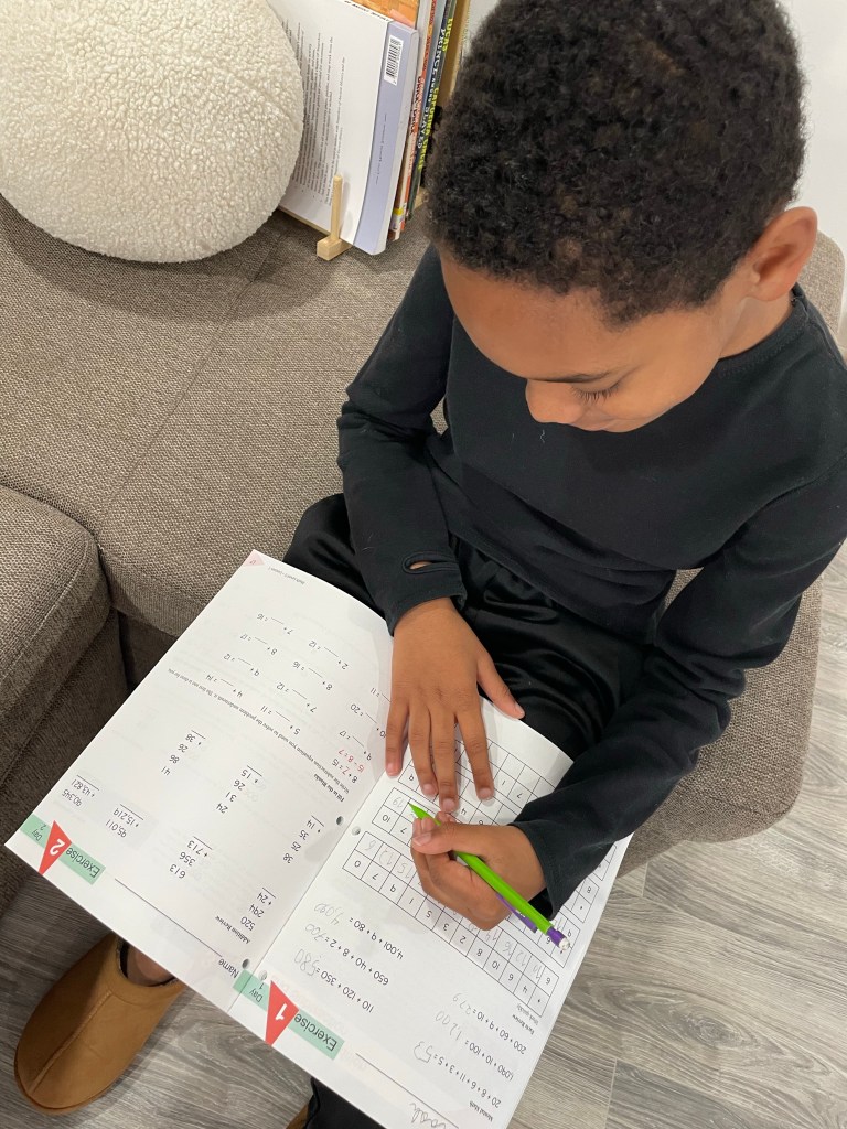 For example, while he was tackling Algebra, I’d have him review multi-digit addition to reinforce the basics. It may sound like a lot, but he breezed through it, and I felt reassured knowing we weren’t skipping over important concepts.
