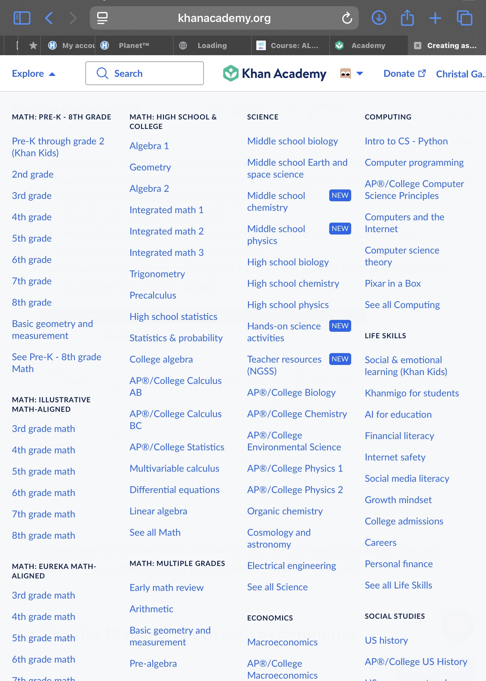 Khan Academy also supports mastery learning, giving students the chance to repeat lessons until they are truly comfortable before moving forward. This has given Cash the freedom to stretch into advanced topics while still shoring up his foundations when needed.